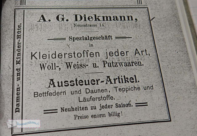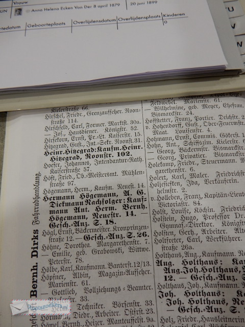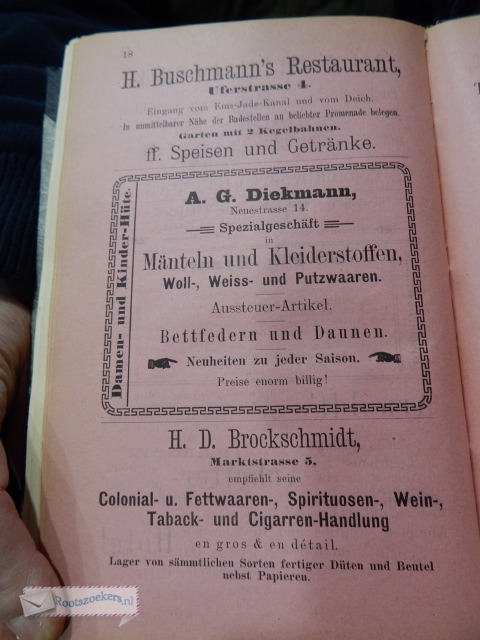 Picture Files Picture copies in all sizes: 0 | 1 | 2 | full Note Adresboeken archief Wilhelmshaven. Diekmann-Witte, Neue strasse 14. Keywords |