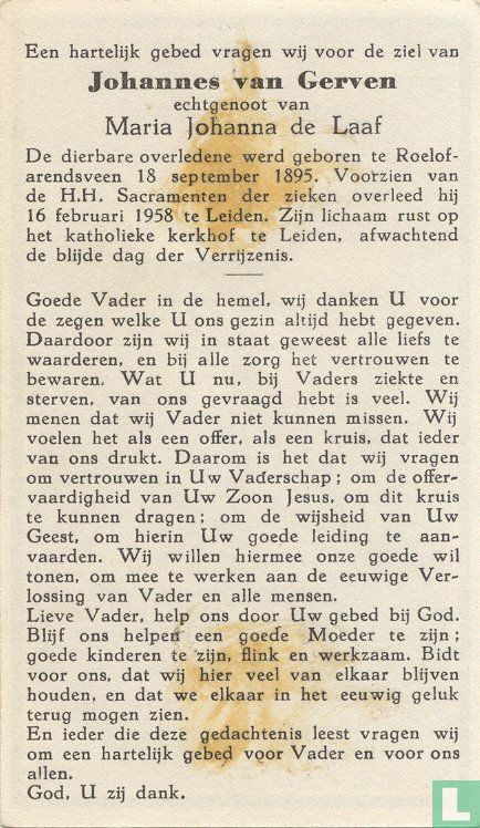 Johannes “Jan” van Gerven , geboren te Roelofarendsveen en overleden in Leiden. 7e kind van Johannes van Gerven & Anna Hoogeboom.