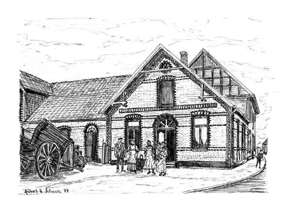 Die Zeichnung, zeigt das Stammhaus der Familie Taphorn in Cloppenburg. Ich habe sie nach einer alten, verknickten und vergibten Fotographie gezeichnet.( Bron: Hubert Schewe)