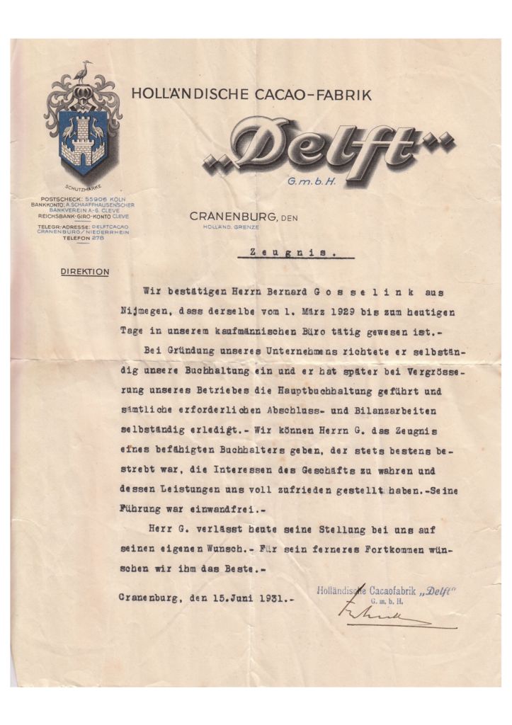 Hij heeft altijd in de boekhouding gewerkt in 1931 nam hij zelf ontslag bij de Hollandische Cacao-Fabriek ” Delft”. Helaas is er van deze fabriek nog weinig te vinden.