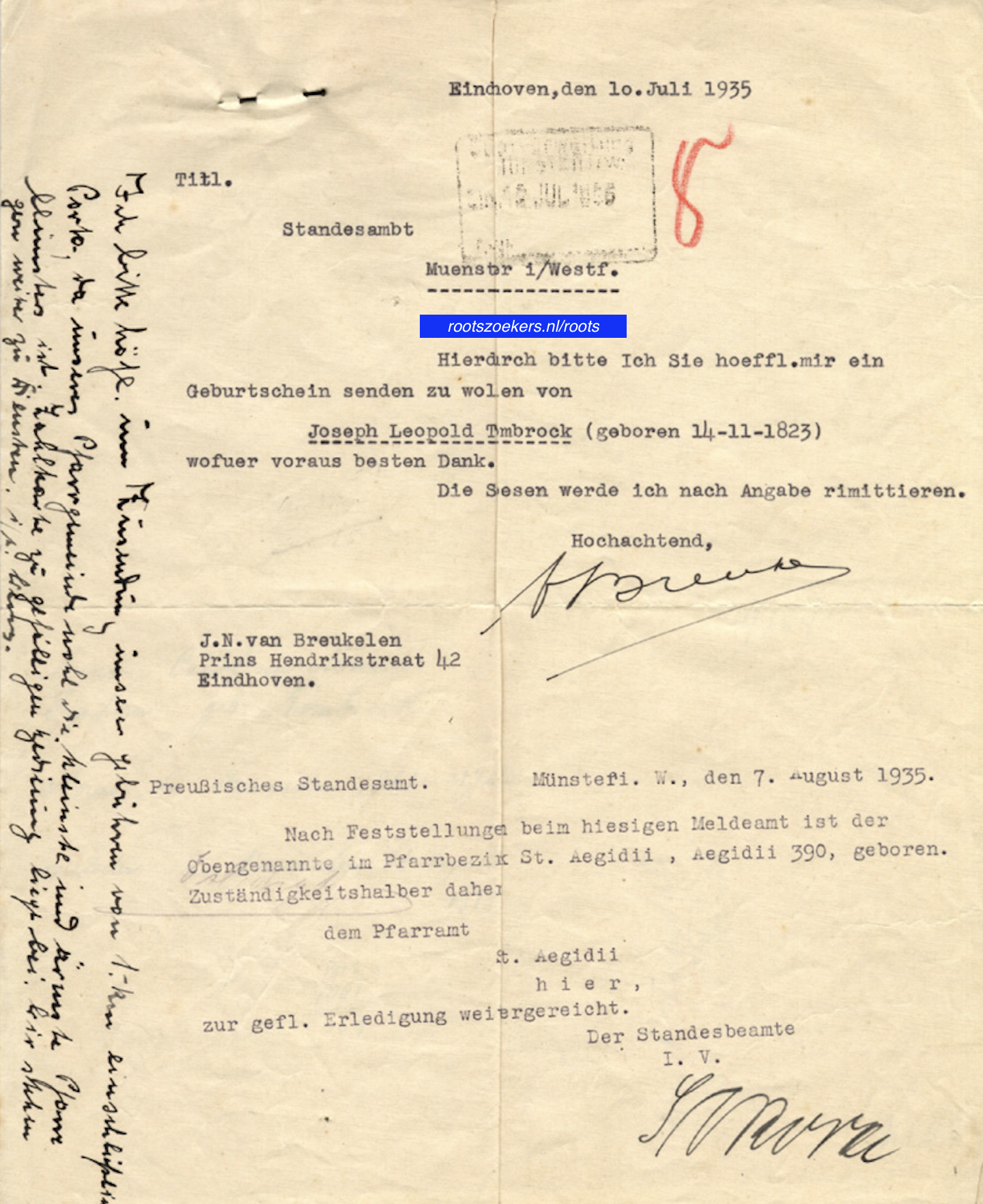 Joseph is gehuwd met Maria Anna Theresia Theissling te Lengerich 1856.